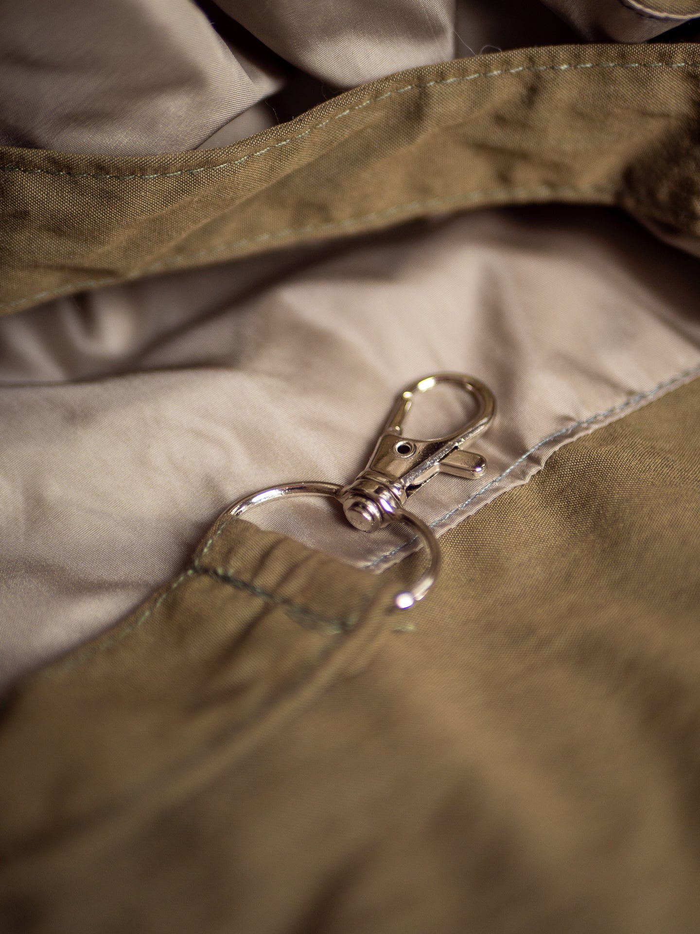 Il sacco Rain 2 è stato eco-disegnato da un impermeabile da donna. E' il fratello gemello del sacco Rain ma con una cucitura centrale. Classico e impermeabile, il sacco Rain 2 è la borsa che ti accompagna nei tuoi spostamenti. Chiusura realizzata con due bottoni automatici e fibbia con passante ideato da una cintura da uomo in pelle, il sacco Rain, è foderato, all'interno, di colore beige ed è dotato di un gancio portachiavi e di due tasche per il cellulare e per piccoli oggetti.