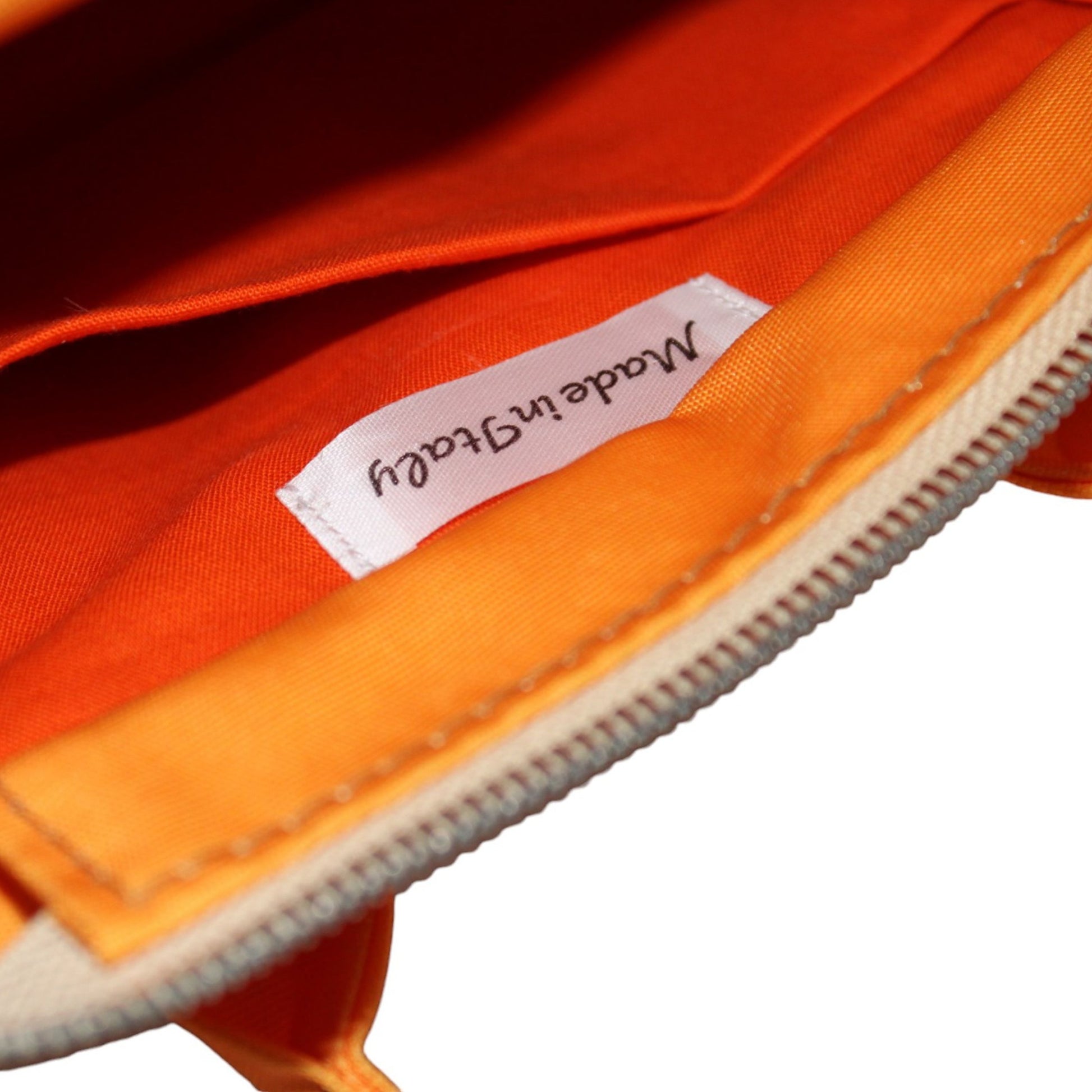 Realizzata in poliestere riciclato al 100% certificato da SEAQUAL® MARINE PLASTIC, la Tote Giglio piccola è l'accessorio ideale per portare tutto il necessario con un tocco di eleganza. Può essere portata a mano o con la tracolla panna regolabile, la Tote Giglio piccola ha una chiusura a zip e una tasca interna per piccoli oggetti. Questo tessuto contiene circa il 10% di rifiuti marini di plastica ed il 90% è costituito da PET post-consumo proveniente dalla terraferma. Made in Italy, fatta a mano. Colore: arancione
